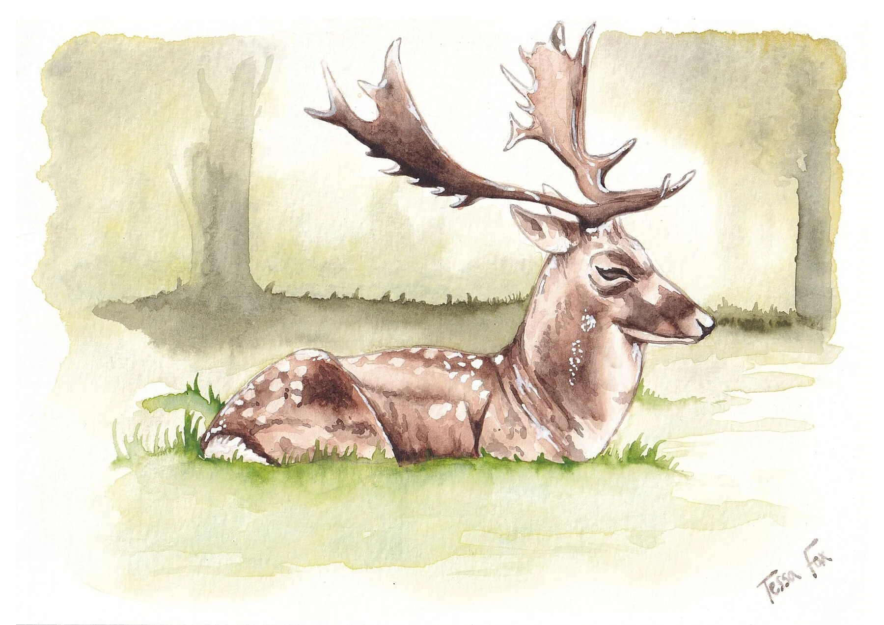 Reproduction print of my original watercolour deer painting, as part of my British Wildlife series.